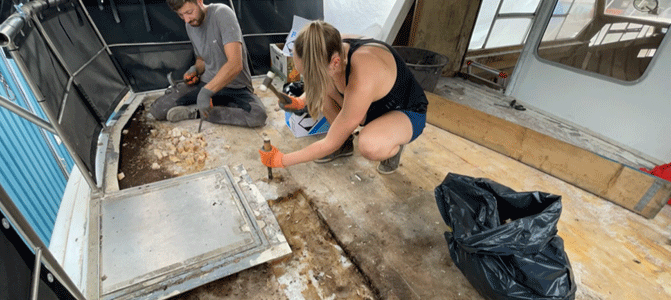 Hilmar heeft inmiddels een instagram account aangemaakt, en houdt je daar op de hoogte van de refit van de boot. Link naar het instagramaccount. Begin oktober 2023: keuzemoment. Het wordt een boot! (vader vertelt) Het was al langer onderwerp van gesprek aan tafel: een eigen plekje om te wonen. Op eigen benen. Uitvliegen! Maar hoe dan?! Iedereen weet dat de huizenmarkt voor starters een onmogelijkheid is. En dus komt van alles voorbij. Van een tiny house via wonen in een Mongoolse Yurt of Houseboat tot...een 'gewone boot'. Want voor die laatste is gemakkelijker een ligplaats te vinden dan voor een Houseboat. En Hilmar houdt van het water en ziet zich met een eigen schip ook nog wel regelmatig verkassen. Zo kan hij niet wachten om met zijn eigen boot voor anker te gaan op het Grevelingenmeer en daar prachtige onderwaterfilms te maken! Weken, maanden, zelfs enkele jaren gaan zo mijmerend voorbij. Eerst moet zowiso de studie worden afgerond. Maar na het behalen van zijn Master, in oktober 2023, moet het dan toch gebeuren! Hilmar besluit er werk van te maken. Het wordt een boot! Hij gaat nadenken over de juiste afmetingen en begint zijn zoektocht en heuse 'vlootschouw'... ![]() ![]() ![]() Vele schepen komen voorbij, en bezichtigingen volgen. Van kleine ex-beroepsvaartuigen tot stevige recreatieboten. Tot dan toe allemaal van staal waarbij het in het geval van een schip in Amsterdam een wonder is dat het überhaupt nog drijft. Alles in en aan het schip is verrot. Die laat Hilmar, heel verstandig, liggen. Hilmar gaat in enkele maanden door een dikke leercurve. Scheepstechniek is toch weer heel wat anders dan Marine Biologie. Ik roep op een zeker moment: misschien moet je toch ook eens enkele polyester schepen bekijken? Er zijn best enkele merken die in de jaren 70 en 80 solide schepen van glasvezel hebben gebouwd. En zo komen plots aanzienlijk meer kansrijke schepen in beeld. Weer volgen bezichtigingen en al vrij snel dient een kansrijk schip zich aan: wat romp betreft helemaal tiptop, van binnen een vreselijke bende door oa. de gevolgen van jaren condensvocht, inregenen en volslagen amateuristisch kluswerk...en de vraagprijs is daar dan ook naar... 5 november 2023: Is dit dan toch dé boot?! (Hilmar vertelt) Na een aantal boten bekeken te hebben kreeg ik aardig een gevoel van wat ik qua ruimte zocht als het gaat om een boot om op te wonen. Het probleem bleef echter dat boten van dit formaat (±14m lang en 4m breed) zeer ver boven mijn budget liggen en dan bovendien ook nog onderhoud nodig hadden. De Brussels trawler was er een die ik erg bewonderde maar simpel weg het geld niet voor had. Een week lang heb ik gezocht naar scheepshypotheken, banken gebeld, advies gevraagd, maar alles kwam erop neer dat je zonder salaris geen lening kunt krijgen. Zelfs niet met ouders of overwaarde van het huis als onderpand. Welkom in 2023, waar grote organisaties je kaalplukken maar niet willen/ kunnen meedenken met starters. Ik stond op het punt om de hoop op te geven, toen ik nog een laatste poging waagde op marktplaats. En prompt, daar zag ik een advertentie van een motorjacht dat mijn aandacht meteen trok. Het schip zag er stoer, maar ook sportief uit en was bovendien ook nog eens van polyester – in tegenstelling tot alle roestbakken die ik voorheen bekeken heb. Mijn vader was ook meteen nieuwsgierig. Er volgde wat heen en weer ge-mail met vragen over afmetingen, stahoogte en natuurlijk de prijs (want die stond er niet bij). Drie dagen later stond ik bij hem op de kade. Samen met een goede maat van mij, Jonathan, had ik een driedaagse trip naar Luxemburg gepland. Toevallig kwamen we daarbij precies langs de haven nabij Roermond, waar de boot lag. Van buiten zag de boot er precies zo uit als op de foto’s, strakke witte lak en een mooi gevormde romp. Eigenlijk mag ik dit niet over iets anders zeggen dan mijn vriendin, maar ook dit was gewoon een ‘lekker ding’. We werden hartelijk verwelkomd door de Belgische eigenaar, die ons vol enthousiasme een rondleiding gaf door de boot. Op de foto’s had ik al wel gezien dat het een opknapper was, maar wat ik aantrof had nog wel heel veel aandacht nodig! Toch liet ik me daar niet door uit het veld slaan, want door het rotte hout heen zag ik vooral veel kansen. De motoren zagen er redelijk goed uit, de boot lag stabiel in het water en we werden lekker gemaakt met alle dingen die er al aan gedaan zouden zijn: